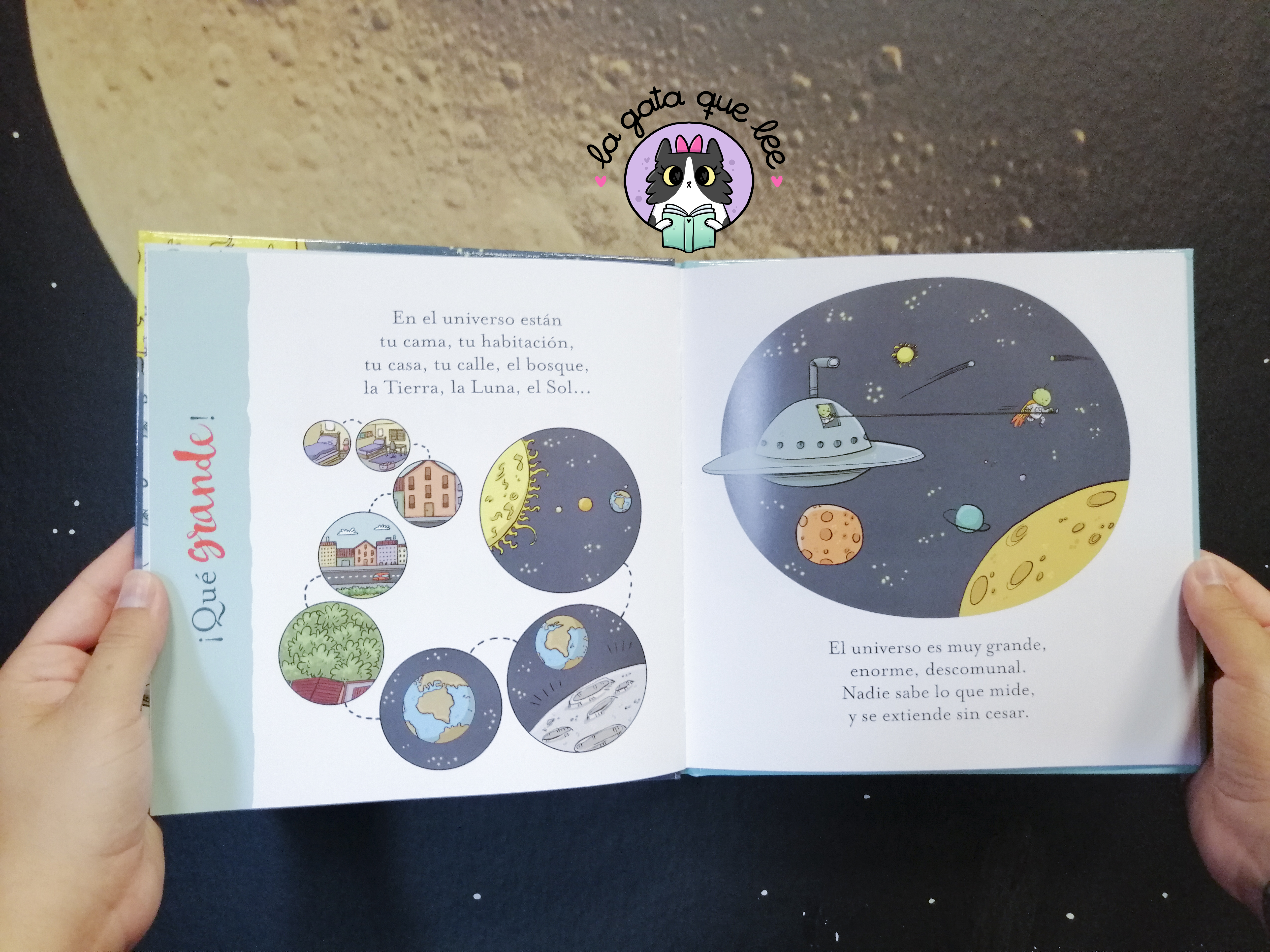 En el universo están tu cama, tu habitación, tu casa, tu calle, el bosque, la Tierra, la Luna, el Sol. El universo es muy grande, enorme, descomunal. Nadie sabe lo que mide, y se extiende sin cesar.