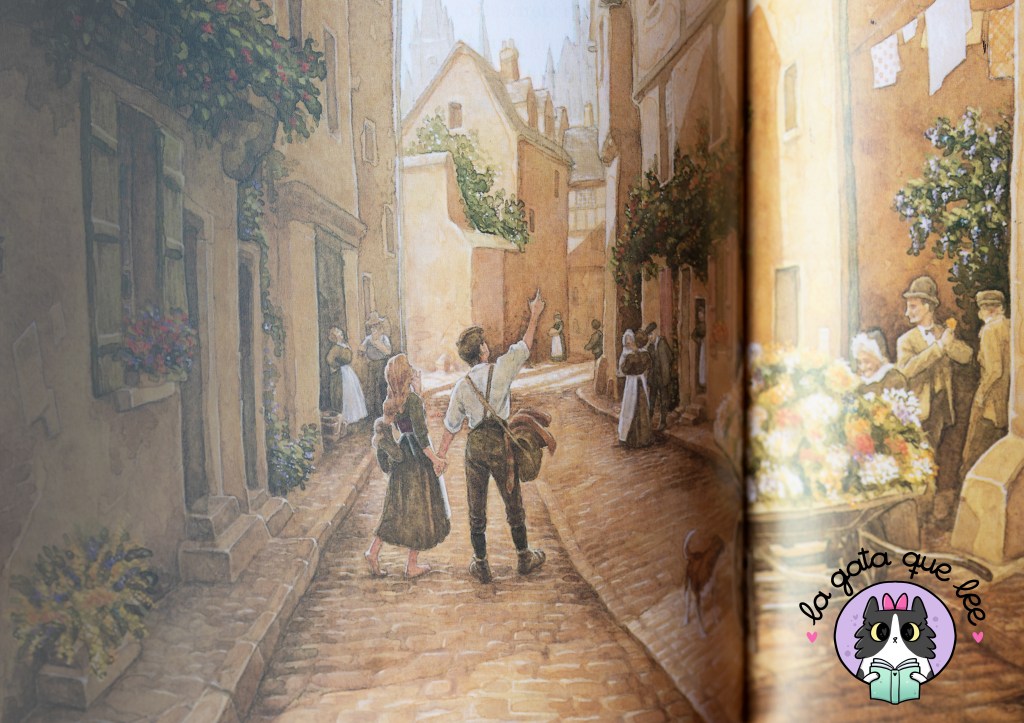 «Caían unos cuantos copos de nieve y uno de ellos, el más grande, fue a parar al borde de una de las jardineras. El copo de nieve empezó a crecer, creció más y más, y al final se convirtió en una dama vestida con una finísima túnica blanca, formada por millones de copos que parecían estrellas»