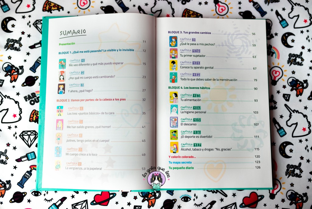 - Bloque 2. Vamos por partes: de la cabeza a los pies: Los tres puntos básicos de tu cara; Me han salido granos, ¡qué horror!; ¡Jolines, tengo pelos en el cuerpo!; Mi cuerpo crece a lo loco; La vergüenza, ¡a la papelera!