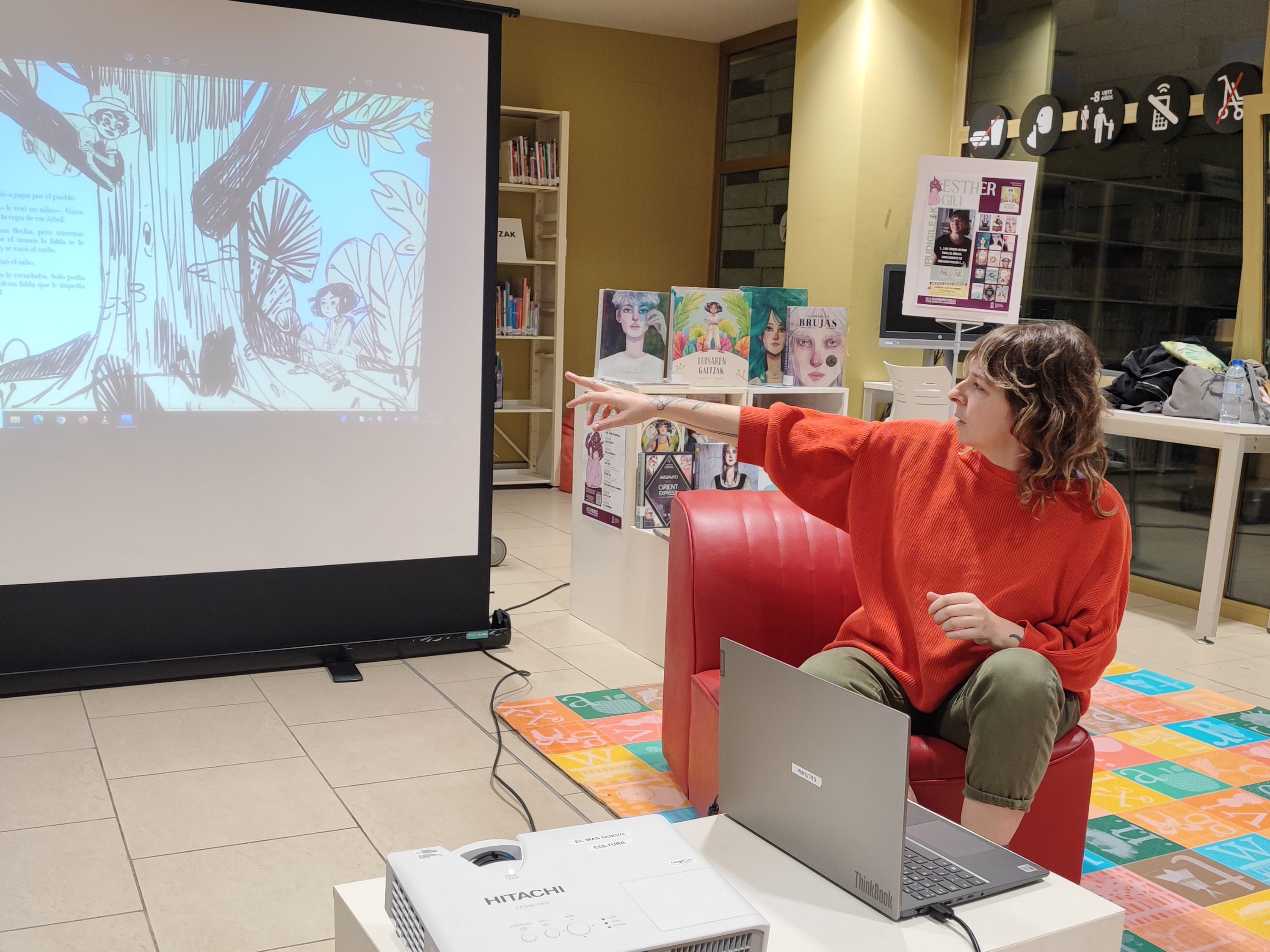 En Vitoria-Gasteiz se viene celebrando en los últimos años un Ciclo sobre Ilustracion, desde una mirada feminista, bajo el título de Irudigileak. Para mi grata sorpresa en la edición de 2024 han contado con la participación de la ilustradora Esther Gili, a la cual admiro por la calidad de su trabajo y por su estilo único e inconfudible. Dentro de este Ciclo, celebrado entre los meses de octubre y noviembre, se han realizado exposiciones, presentaciones y talleres en el Centro Cívico el Pilar.