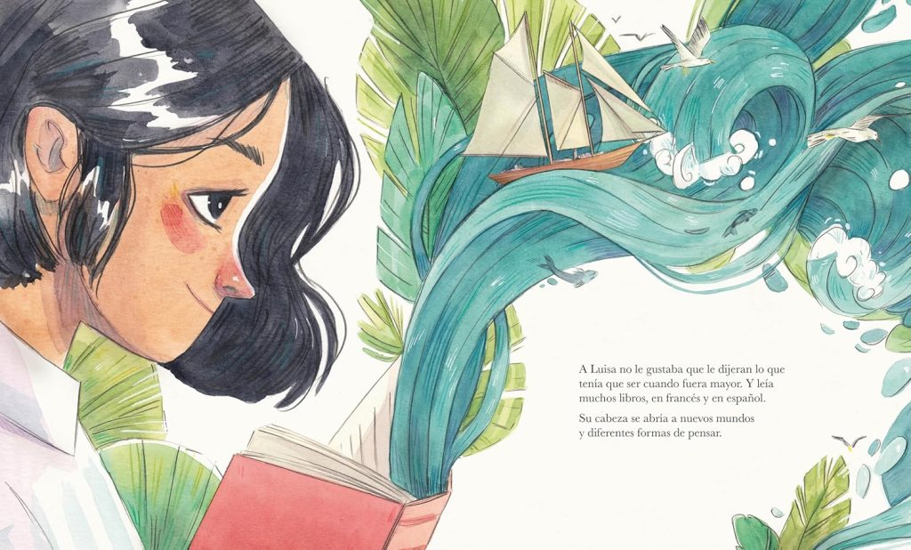 Conocimos así la historia de Luisa Capetillo, una mujer con una historia súper interesante, una historia de esas que las niñas y los niños necesitan escuchar, una historia con la que crear referentes. Luisa Capetillo, puertoriqueña de nacimiento, fue pionera del feminismo en su país. Trabajó como lectora en fábricas de tabaco, viajó por todo su país para organizar a los trabajadores y luchar por la mejora de sus condiciones laborales fue partidaria del amor libre, se desarrolló tambien como escritora y fue la primera mujer en Puerto Rico en usar pantalones. Una mujer fascinante a la que todos deberíamos conocer y qué mejor forma que hacerlo a través de esta versión tan amena y colorida.