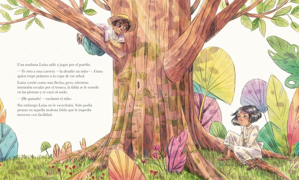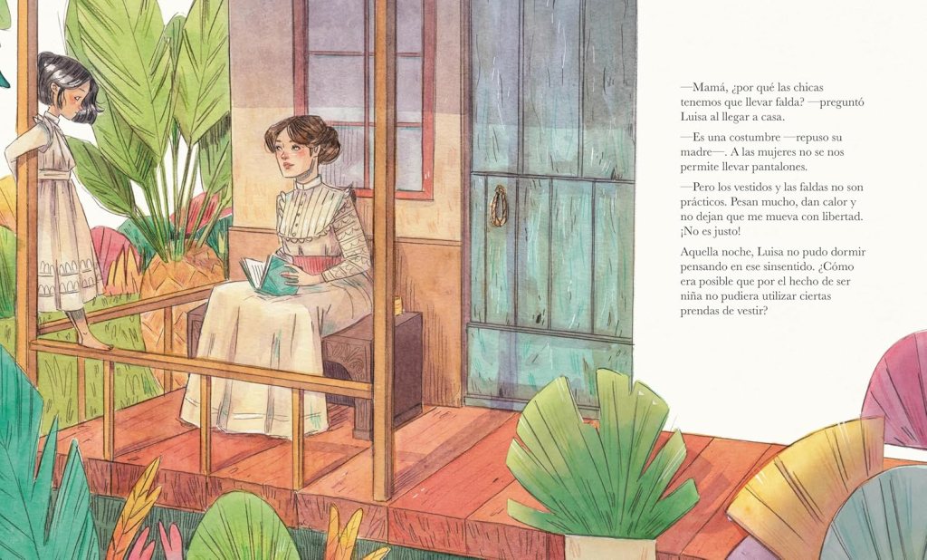 Los pantalones de Luisa«Luisa era una niña valiente que, desde bien pequeña, luchó por lo que creía justo defendiendo la igualdad. Vivió en una época en la que las mujeres debían llevar falda, a pesar de que en muchas ocasiones fuera incómoda y no les permitiera moverse con libertad. Luisa decidió cambiarlo, la solución era tan sencilla como ponerse unos pantalones, pero ¿estuvieron todos de acuerdo con su decisión?»